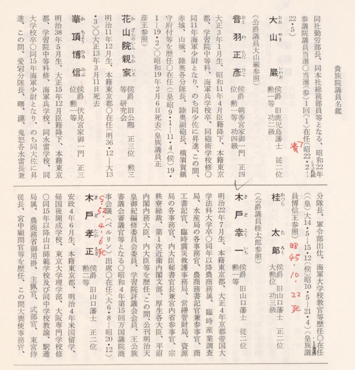 話を戻すと、当時の皇族男子は天皇の藩屏として全員軍人になることが求められており伏見宮家、華頂宮家は海軍の宮様だった。貞愛親王だけは陸軍だったが、その子らはみな海軍に進んだ。華頂博信閣下は巡洋艦や駆逐艦を渡り歩き水雷長や軍令部員などを歴任したようである。終戦までの後半は海軍の水雷系のスペシャリストとして教育畑を歩んで来られた。海軍中佐の階級で8月の終戦を迎え、9月に海軍大佐に上がり11月に予備役に編入となった。
